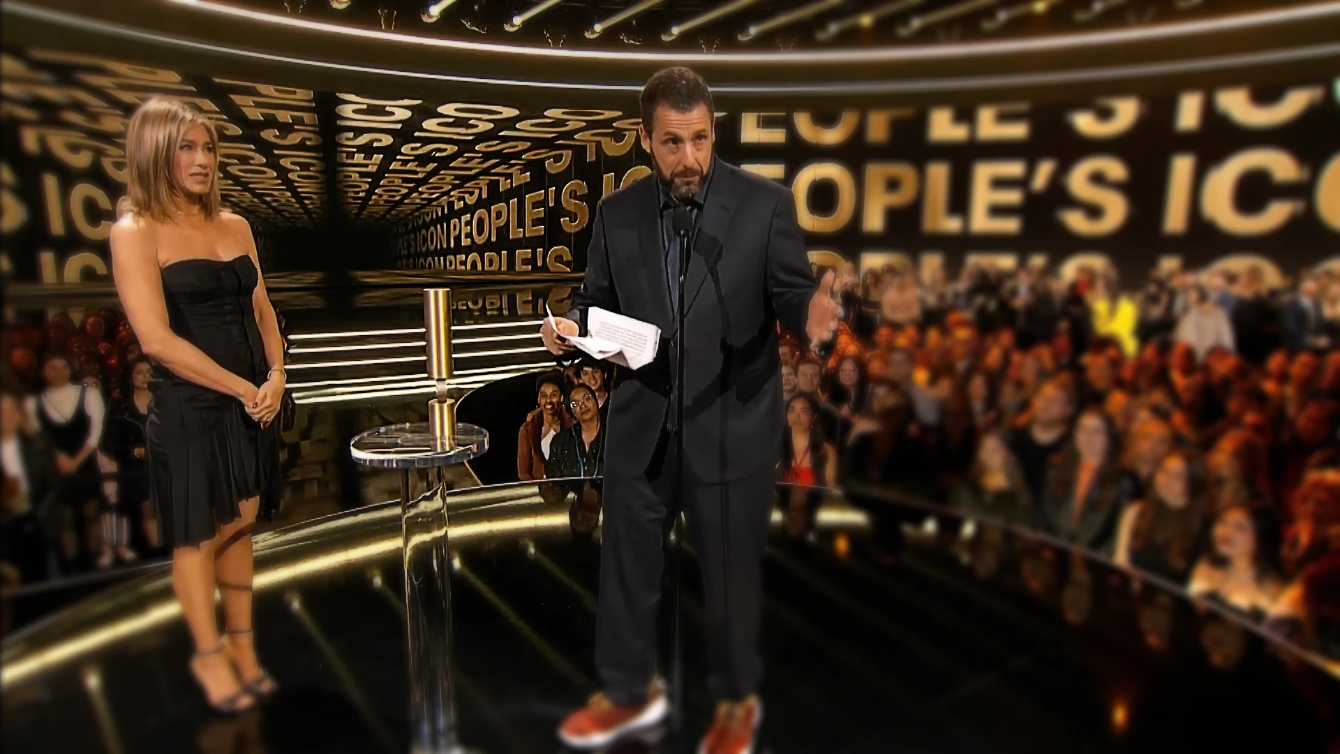 The ever-iconic Adam Sandler known for his roles like Billy Madison, took home the People’s Choice Icon Award at the 2024 ceremony. But true to his form, his trip to the stage wasn’t your typical, tear-jerking acceptance speech.
