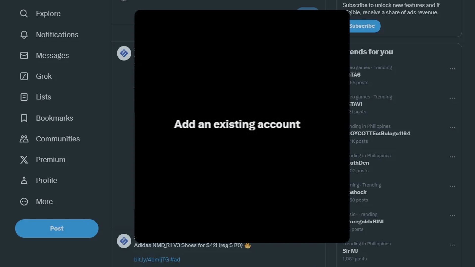 X (Twitter) “Add an existing account” not working on Chrome