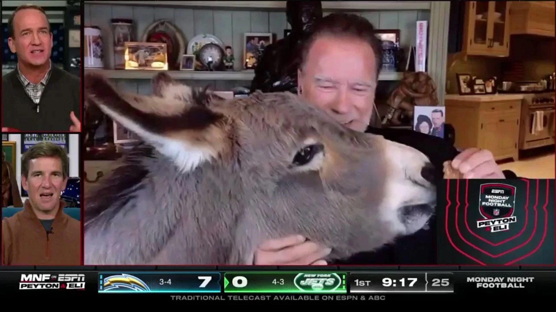 NFL: Arnold Schwarzenegger’s donkey steals the show at ManningCast