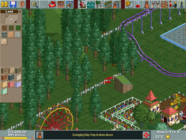 If the building system is the heart of the game, the economy is its brain. RollerCoaster Tycoon’s most laborious aspect is maintaining a proper balance between negatives and the positives. The moment you install a new ride, it will become the most popular attraction in your park, giving all the others a run for their money. There is no external system to monitor the popularity of individual rides. A reason why I found myself going over each ride individually to find out what the guests think about them. So far, that is the only way to determine the popularity of a ride. Guests have a pre-programmed thought process. They will criticize, complain and praise many things in your park, starting from cleanliness to safety. Sometimes, the popularity of a certain ride will drop and the resultant effect will lead to the increased popularity of another one. It is a changeless cycle that will give you a hard time if you have a sizable property to manage. You will soon find yourself over-encumbered with the burden of dropping and increasing prices. Whatever you do, a profit is not guaranteed. If you market your product right, it will sell. There comes the role of advertisements and marketing. There are options aplenty which let you sell coupons for rides for free or at half-price, even advertise your park or particular rides (ref img. 5.0). This is where things get dicey. Remember, profit is not guaranteed. If you market the right item at the right time you receive satisfying results. But the existence of an external monitoring system in the game makes it exceedingly difficult because advertisements are quite expensive.