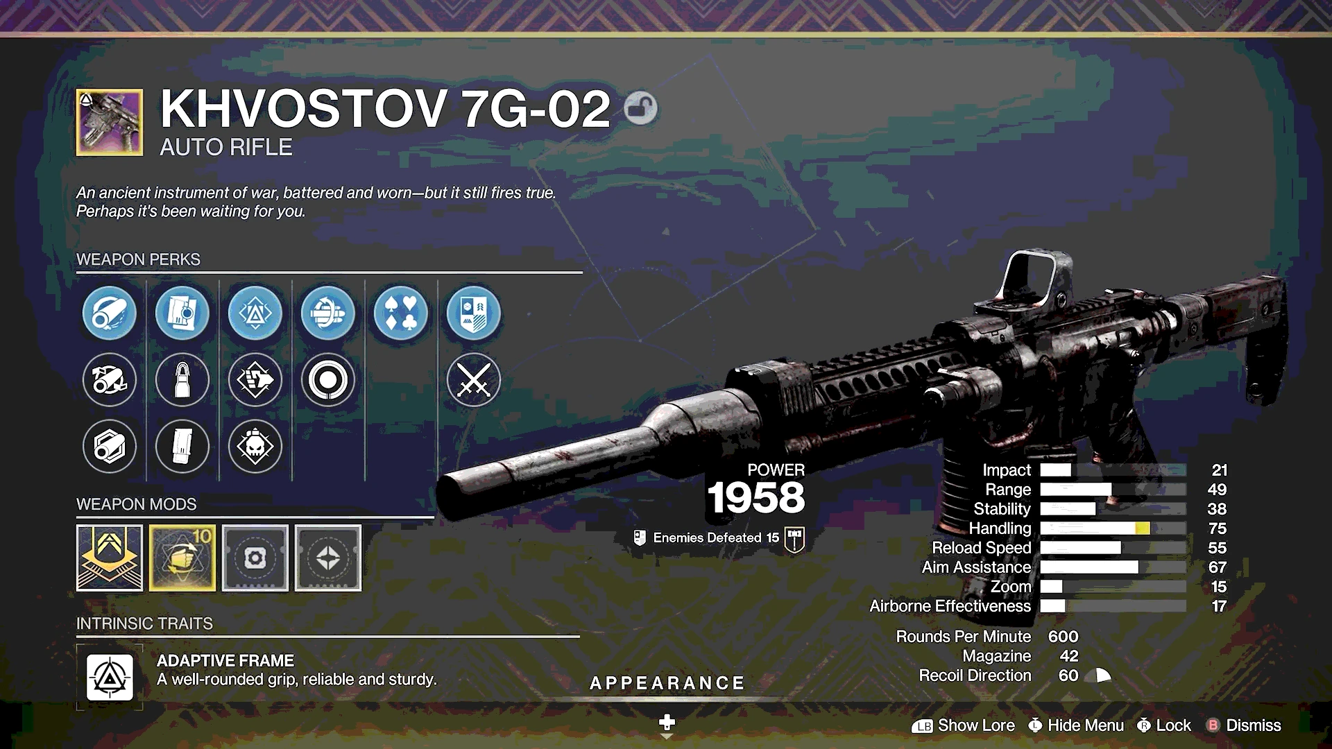 - Claim the Legendary Khvostov-7G: Once you have collected all 15 Lost Encryption Bits (9 from chests and 6 from missions), travel to the Impasse in free roam. Simply get inside and look for the Khvostov in the area where you found it in Destiny 1.