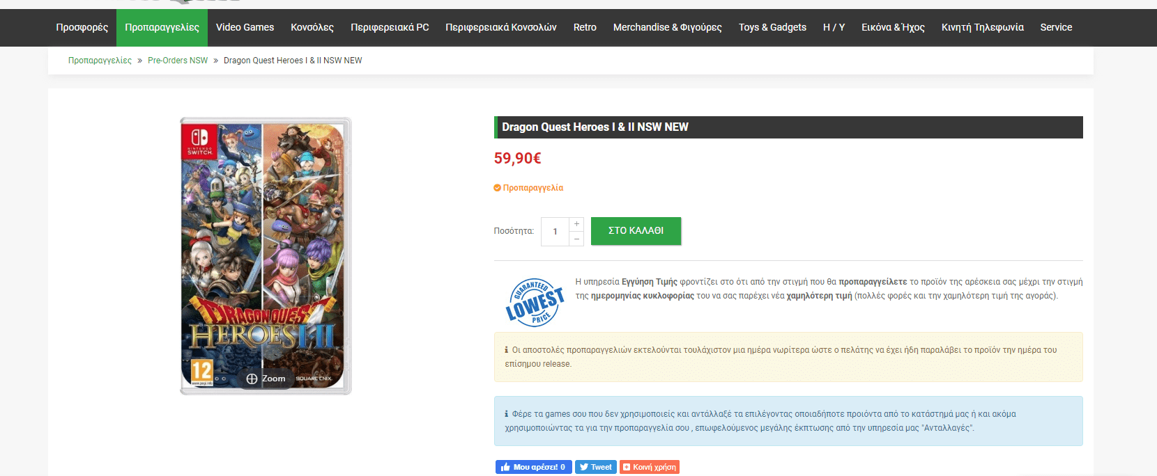A Greek retailer, The Console Club, has listed Dragon Quest Heroes 1 & II for pre-order for the Nintendo Switch. The game is available at a price of 60€, which is significantly less for an imported unit, thereby pretty much confirming the fact that this is not a Japanese unit.