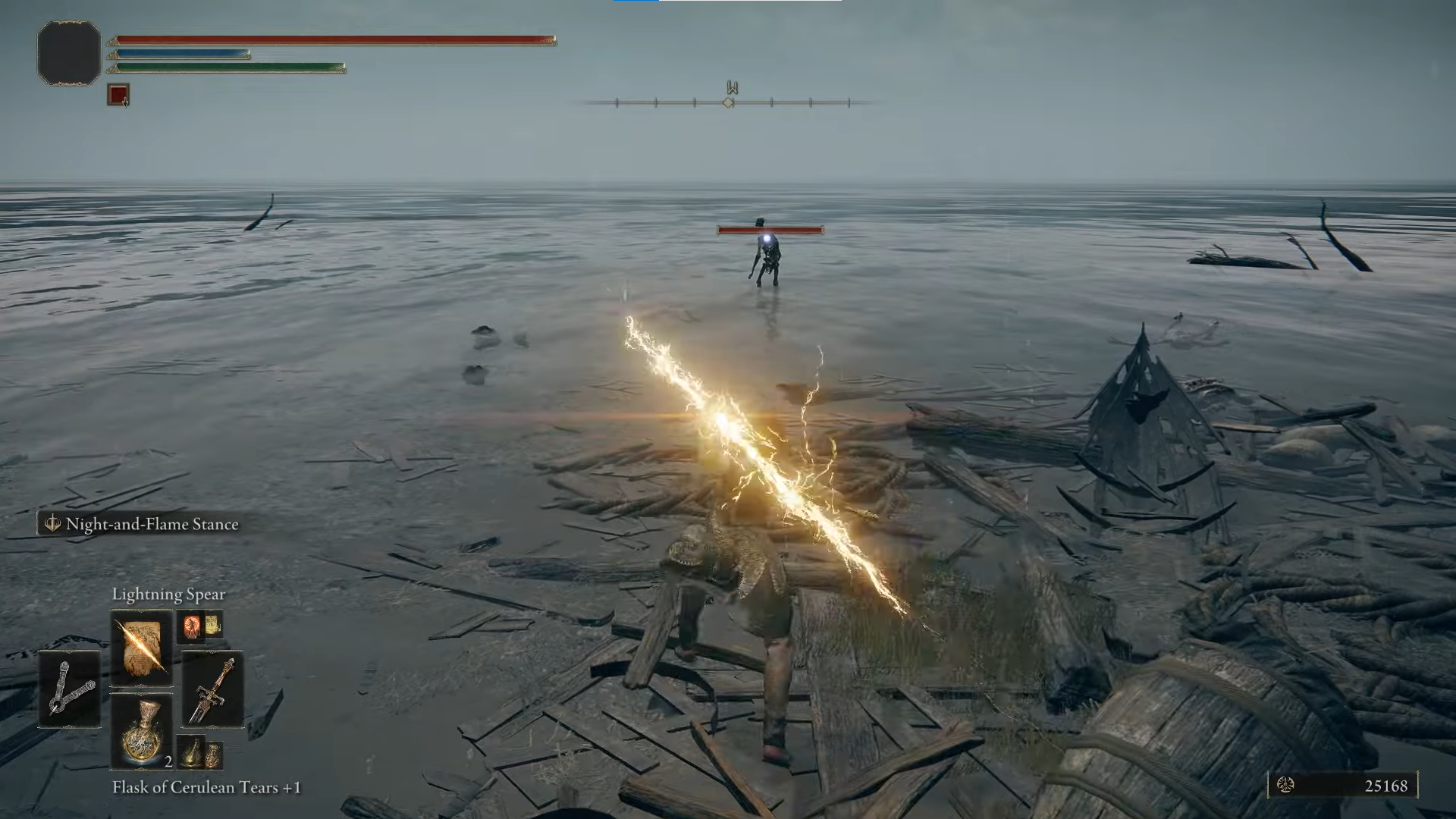 Lightning Spear is an Elden Ring Incantation that summons a lightning missile that can be thrown forward.