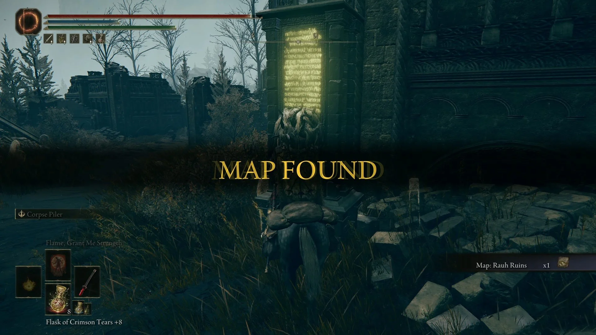 - Head south, past the Ghostflame Dragon boss, and find the map fragment on a path.