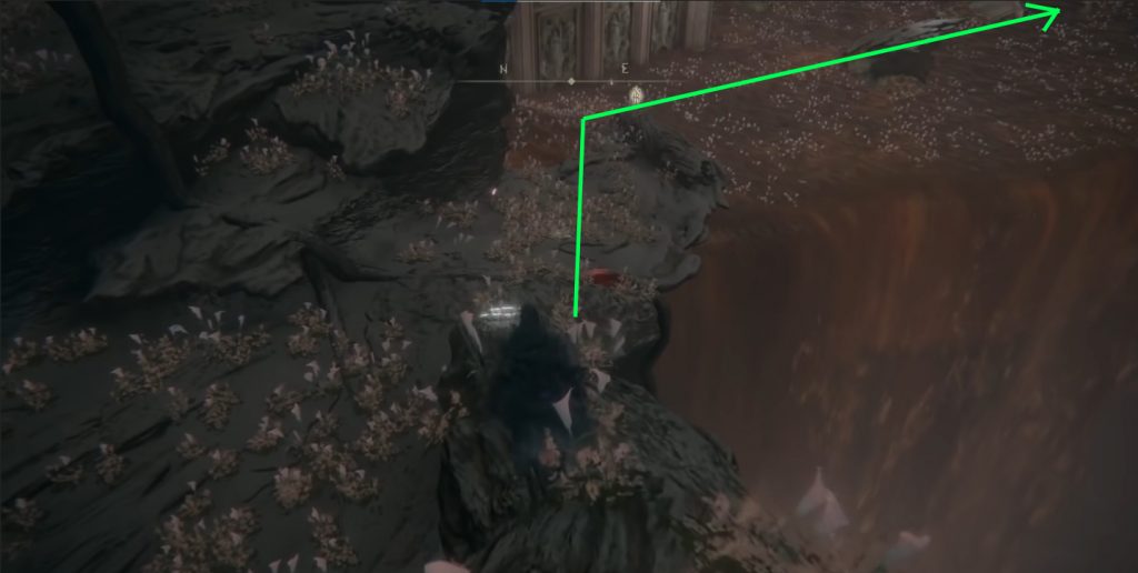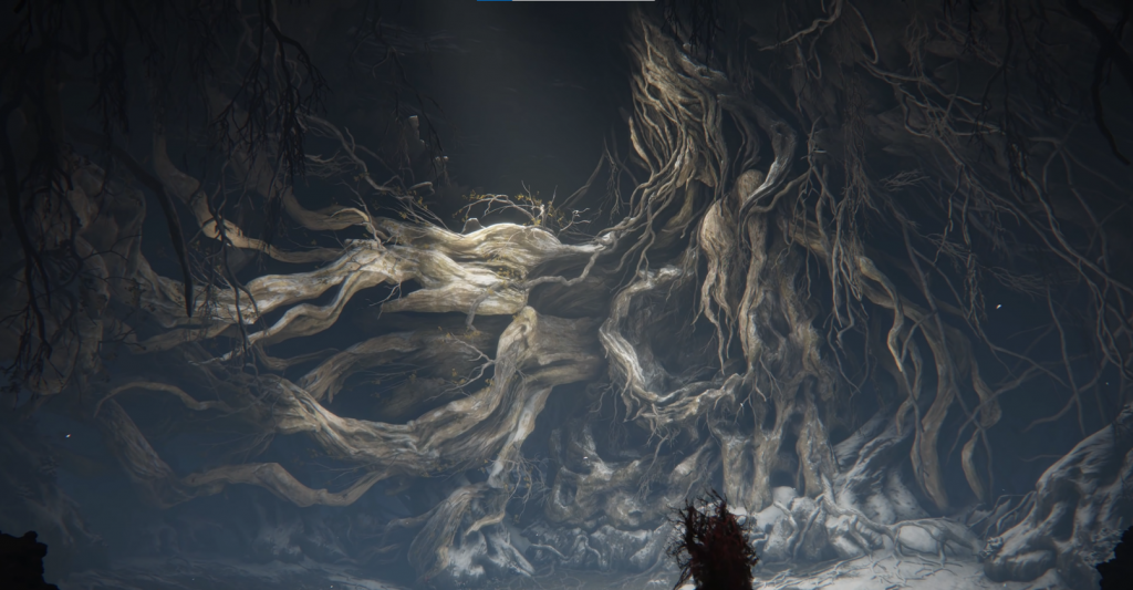 Warning: You will receive Scarlet Rot while crossing this area so make sure your HP is full! Simply follow this path and use dodge roll until you reach the other side. To your right, you will see yet another large branch.