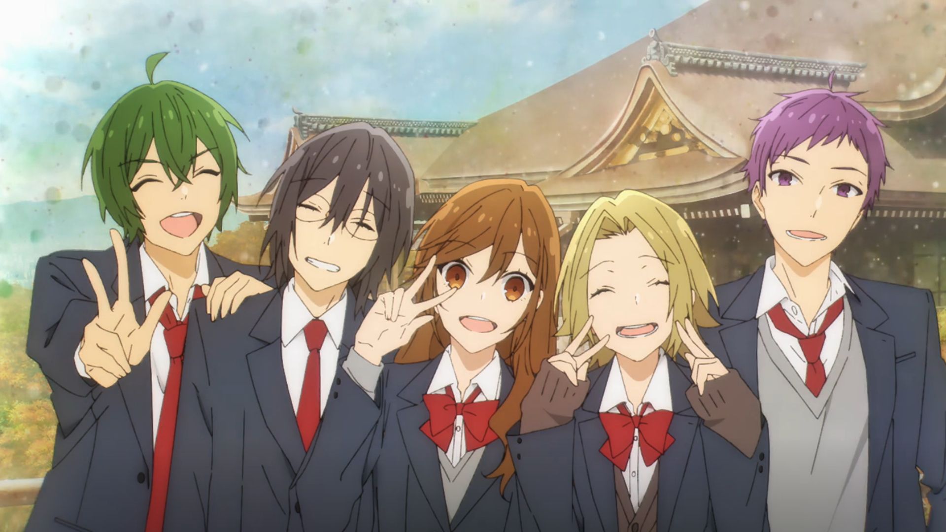 The first episode of Horimiya: The Missing Pieces is titled “The Journey Begins”. It starts with Hori reflecting on her high school experiences after graduation, and then it cuts to a flashback of her school trip to Kyoto.