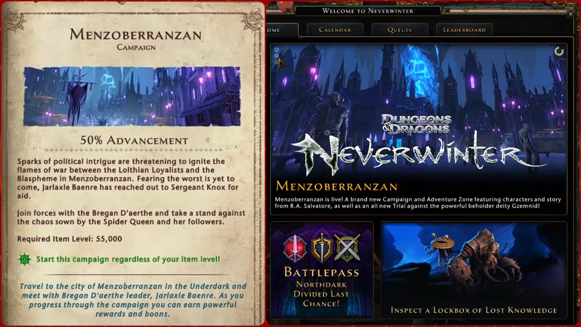- Menzoberranzan brings in a host of new content that players can explore. The Menzoberranzan Adventure Zone is a new area where players can explore and survive the deadly streets of the famous drow city.