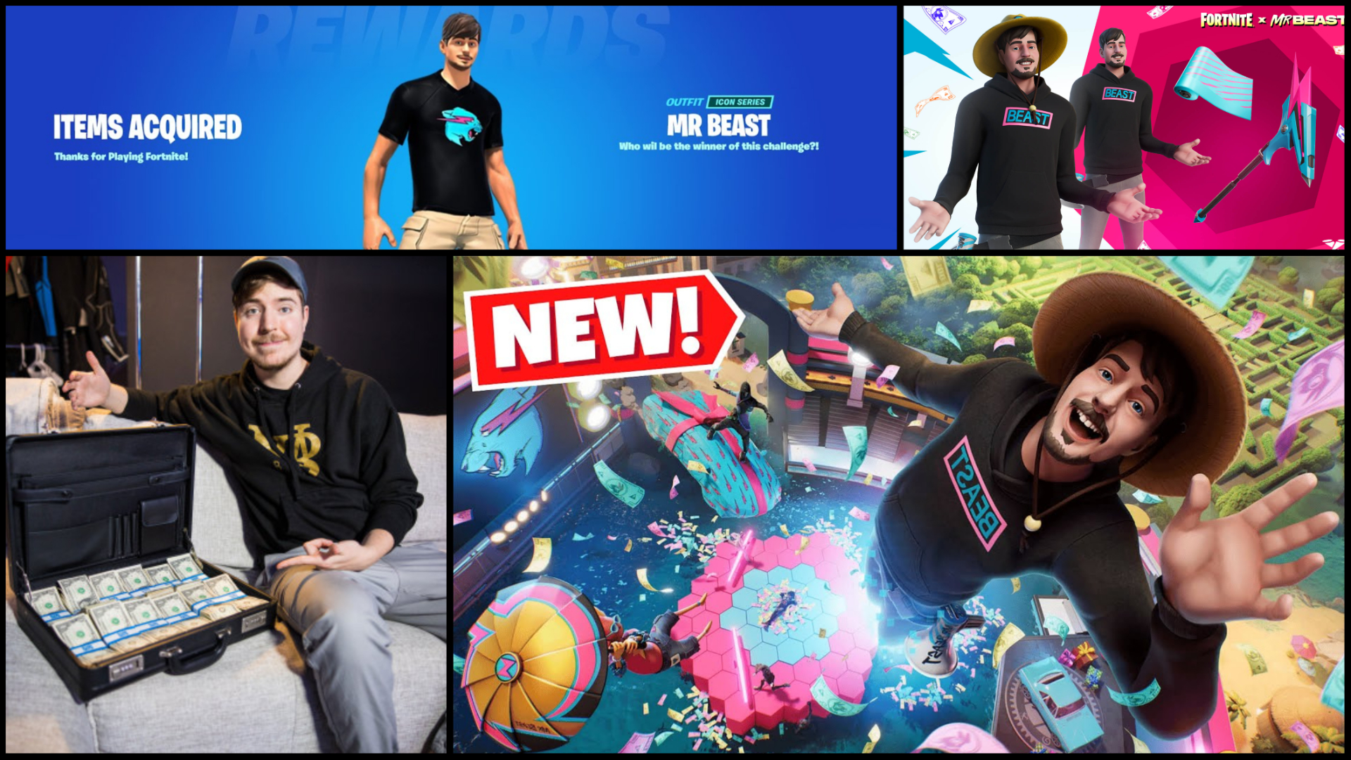 Fortnite’s official item shop will have new MrBeast in-game skins. There will be two unique styles, both of which can be bought. It will also feature event-inspired accessories and emotes which will be available starting December 14, 7 PM Pacific.