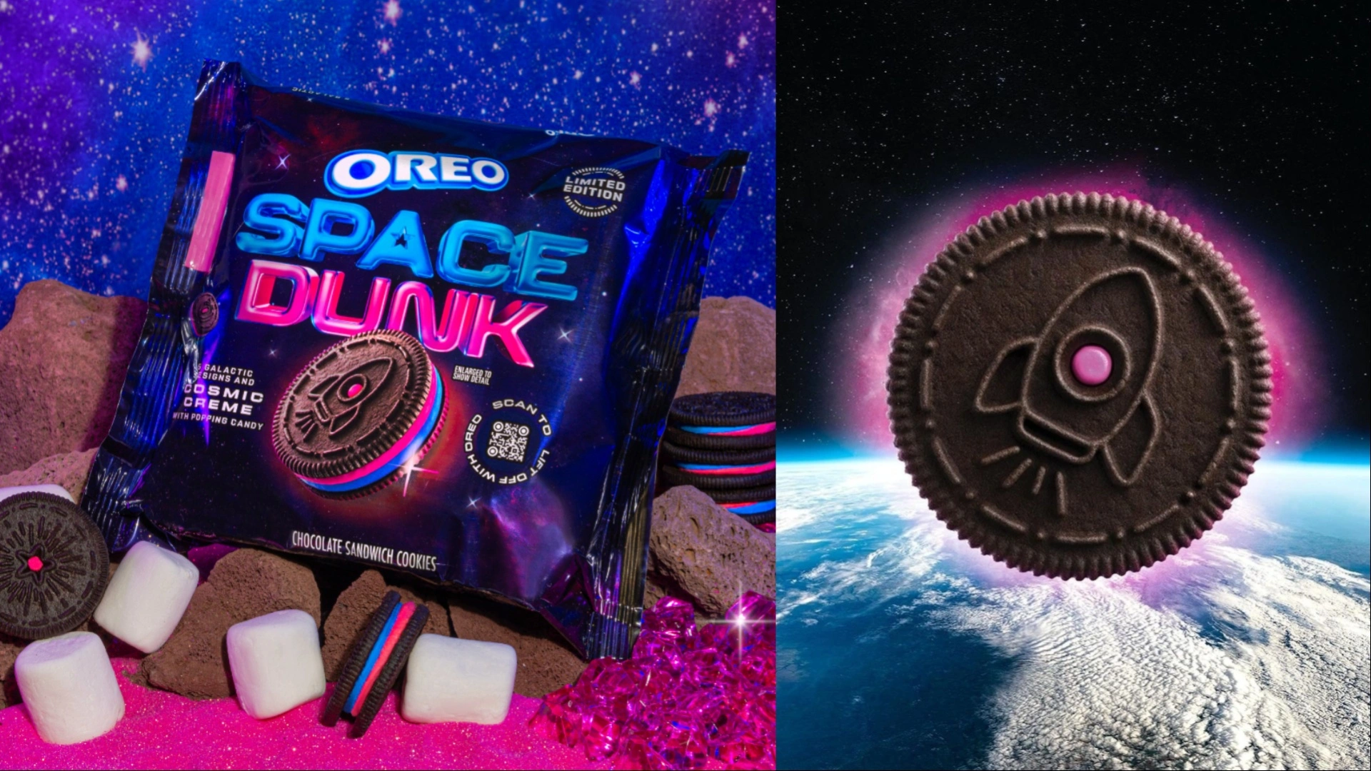 As for the galaxy-inspired cookies, you can expect them to be stuffed with a blue and pink layer of “cosmic creme,” giving a marshmallow flavor for fans to enjoy. Not just that, the Oreo Space Dunk Cookies also include popping candies that offer the supernova bursting experience in every bite of the cookie.