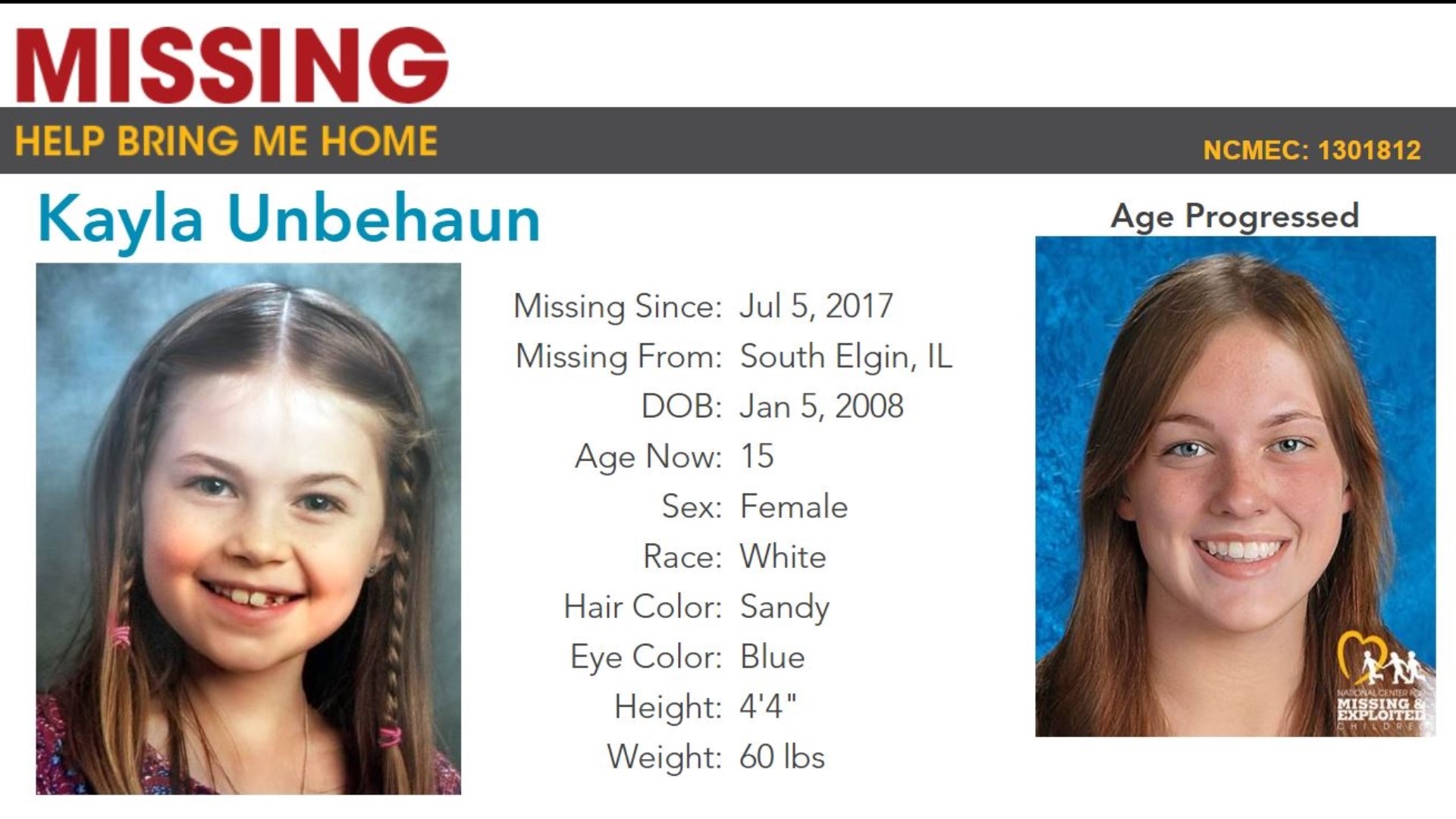 The National Center for Missing & Exploited Children issued a felony warrant for Unbehaun’s kidnapping on July 28, 2017. This non-profit organization aids families in locating American children who are taken by relatives, strangers, or who run away.