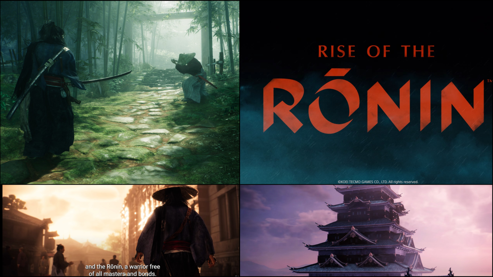 “It’s darkest before dawn. In Rise of the Ronin you will explore an evolving world as you fight to forge a new era for Japan. You are a Ronin, a warrior free from all masters and bonds and as your destiny intertwines with story characters, take part in an immersive combat-focused action experience.”
