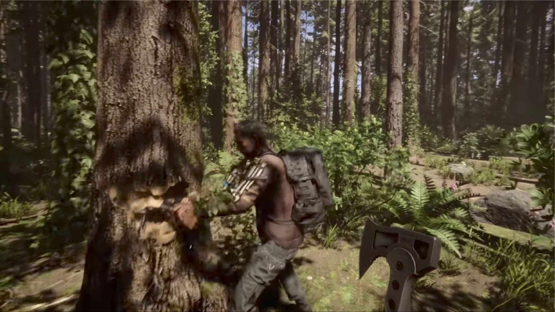 Sons of the Forest is a perfect game just look at the beautiful tree chopping mechanic pic.twitter.com/ObO1TKAQ6e