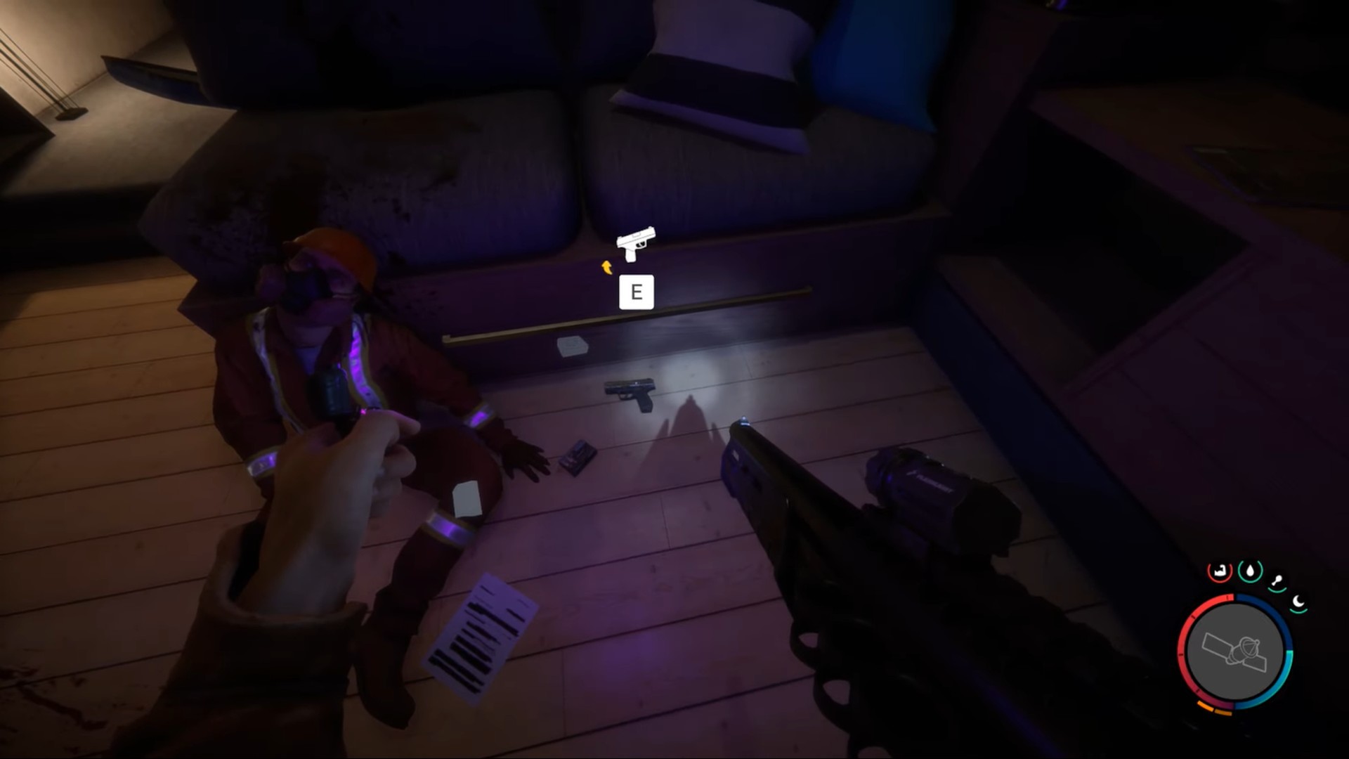 The spot will seem like a cave at first, but there is a hidden facility right below the pinged location. Just head inside the cave until you reach a locked door, which will need a maintenance keycard to open. After opening, go downstairs and look for the very first door on your way. With one of the greatest shocks of your life, you will see a humongous mutated cannibal. This probably wouldn’t be your first time so it’s an easy kill. After killing the monster, head straight into the lobby and follow the first living quarters on your right side. The second pistol is unsurprisingly beside another corpse (again).