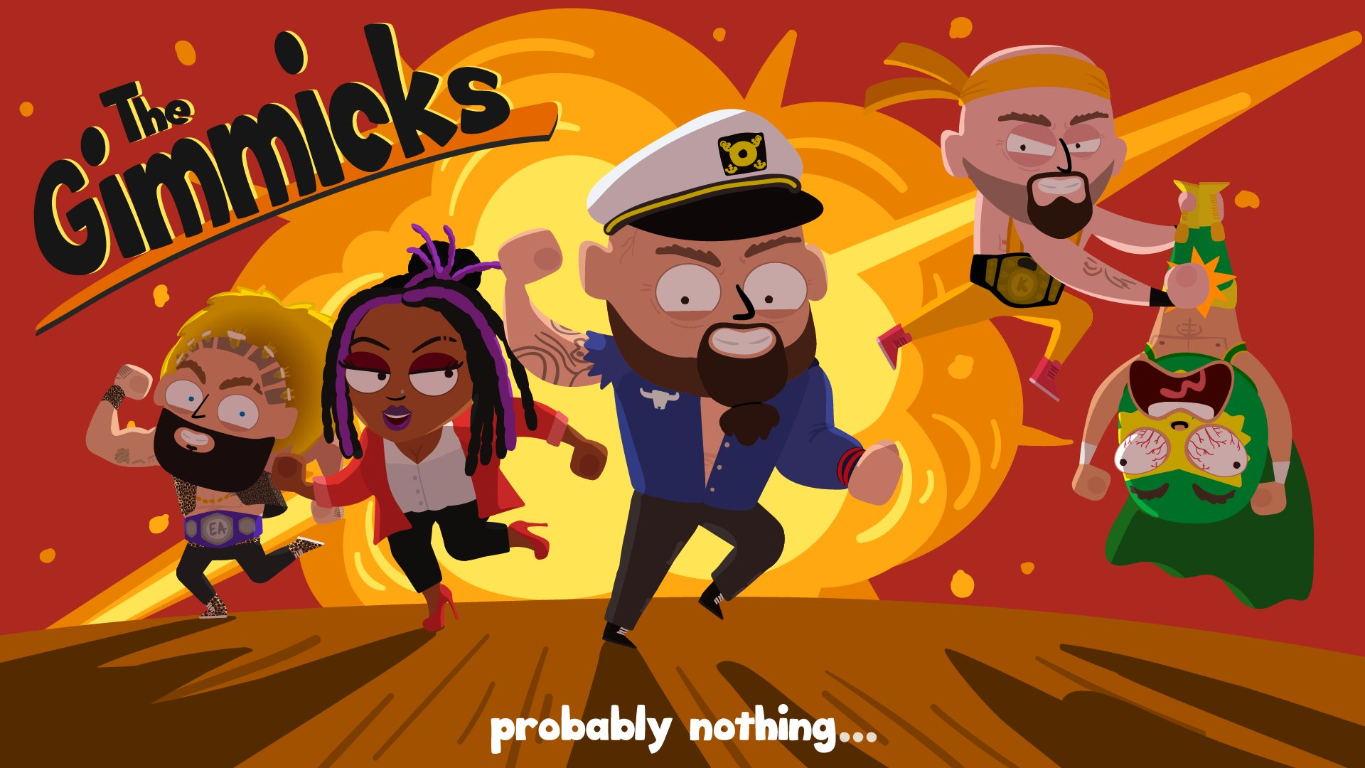 The Gimmicks is an animated NFT series featuring prominent figures in the world of wrestling. Wrestlers Karl Anderson, Luke “Doc” Gallows, nZo (Enzo Amore), and Rocky Romero star in The Gimmicks.