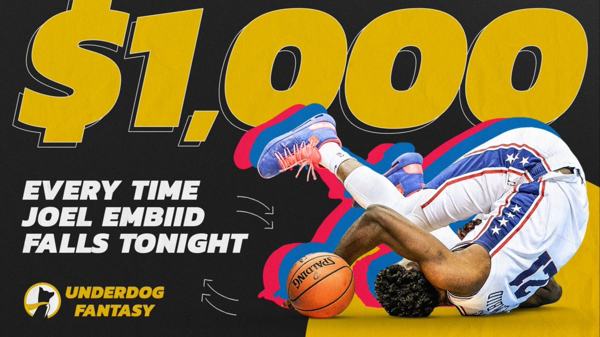 Underdog Fantasy’s approach to sports betting is simply creative, and their latest giveaway is just one example of their strategy to attract more followers. This is another fun and exciting way to make fans more engaged with the game with a chance to win $1000 in the process. Joel Embiid has somewhat earned a reputation for falling to the floor on occasion. And the funny part here is that his clumsy style of play will reward Underdog Fantasy followers with a thousand dollars for his every fall on the floor.