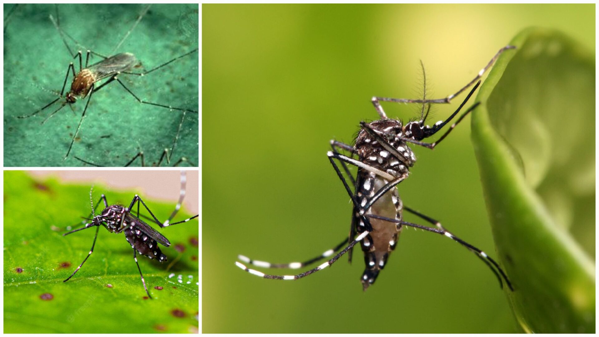 These are dengue-spreading mosquitos found across the world. They are 4-7 millimeters in size and are easy to recognize by black and white markings on their legs. They originated in Africa and spread to all tropical and temperate regions of the world. The females are larger than male and bites for blood while male live off fruits.