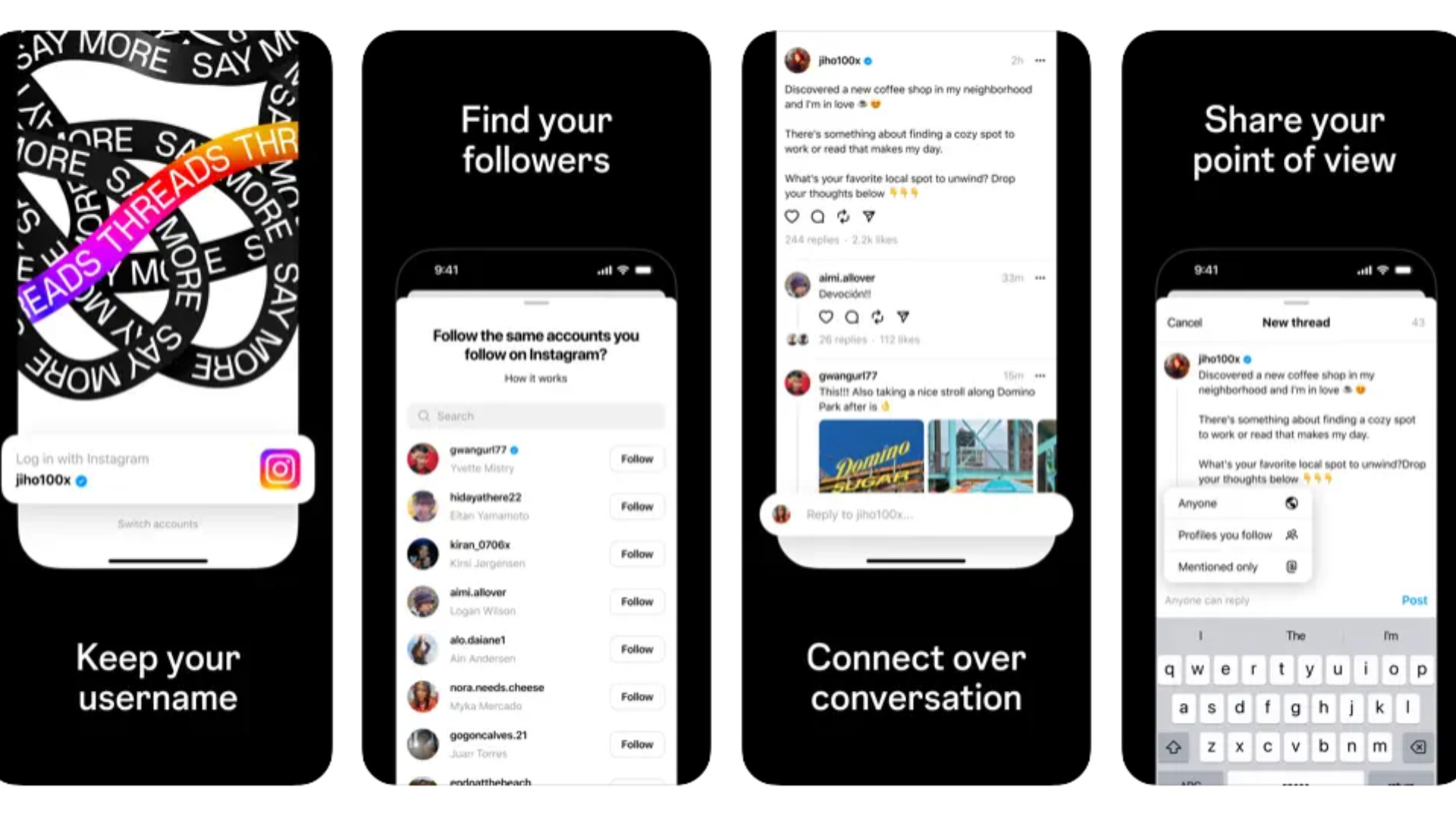 “Threads is where communities come together to discuss everything from the topics you care about today to what’ll be trending tomorrow. Whatever it is you’re interested in, you can follow and connect directly with your favorite creators and others who love the same things — or build a loyal following of your own to share your ideas, opinions and creativity with the world.” – Meta description of Threads.